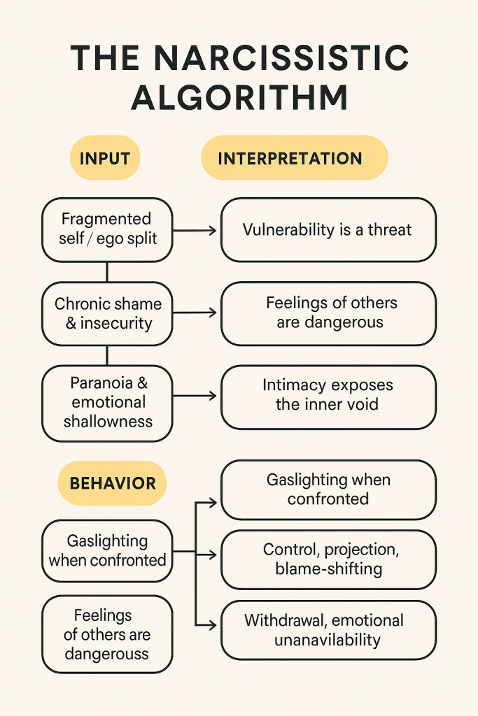 We all have internal algorithms. What makes narcissistic dynamics so harmful is that their code resists updating. It fights reality to preserve a false self—no matter the emotional cost to others.