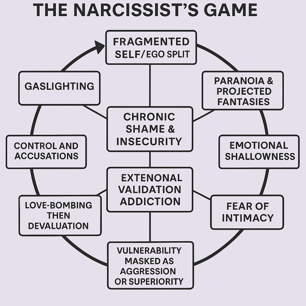 - Why it matters: Without a stable core, the narcissist constructs a false self—an idealized persona designed to win admiration and avoid shame.